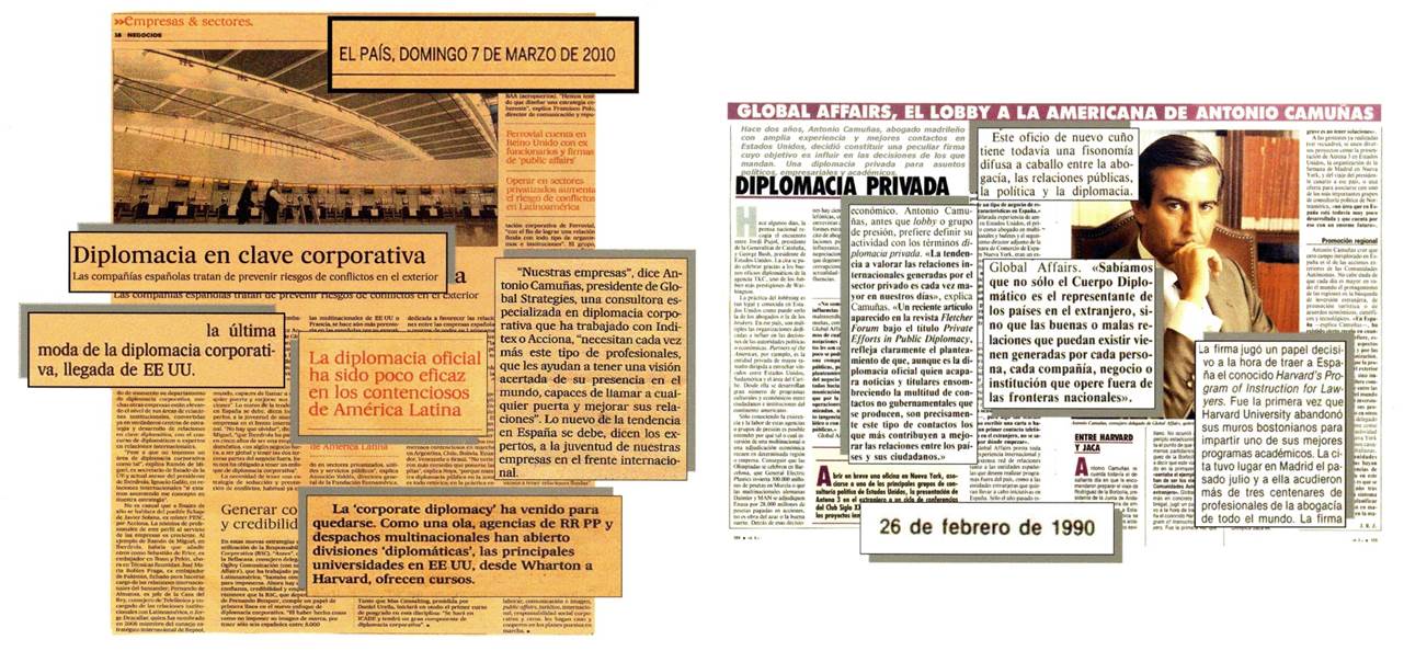 Nevertheless, “this being up with the latest fashion” highlighted by El País (2010) in its article on Corporate Diplomacy in its Sunday business supplement does not seem something easy to implement. The fact is that Global Strategies continues to be the inevitable touchstone in a professional field in which we were pioneers several decades in advance, as attested to in an interview given to Actualidad Económica by our founder back in 1990, some twenty years before.